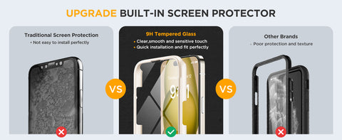 - [Worry-free Installation] No more worries about air bubbles! Automatic alignment frees your hands from finding the precise location to get the screen protector applied flawlessly. Innovative front and back case design isolates dust in the air. NOTE: 1. Please remove any other screen protectors on your phone before installing. 2. Please remove all protective films on the phone case before installing. 3. All assembly and disassembly of the case need to start from the lower right corner.